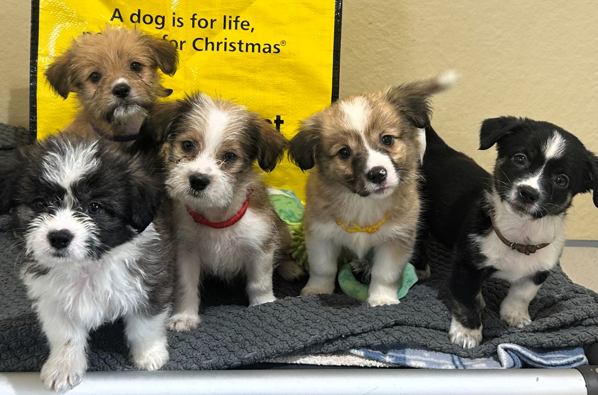 Heart-melting photos show the pups posing in front of a Dogs Trust sign reminding people: “A dog is for life, not just for Christmas.”
