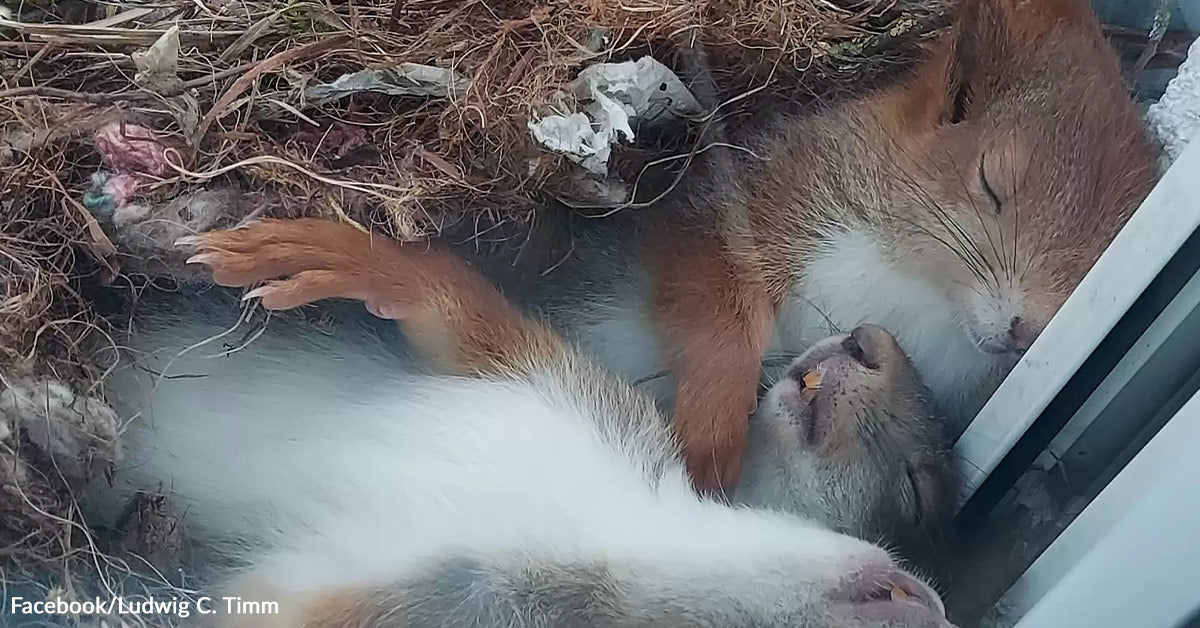 One of the most memorable images emerged on a particularly warm day. As temperatures rose, the squirrels chose to nap outside their nest, offering Timm a rare and unobstructed view. He managed to snap a photo of the squirrels sleeping peacefully, nestled together in the open air. “It was very lucky for me to be able to take the picture of the sleeping squirrels,” Timm told The Dodo. “Normally they're inside the nest, but it was hot that day, so they slept where I could see them.”