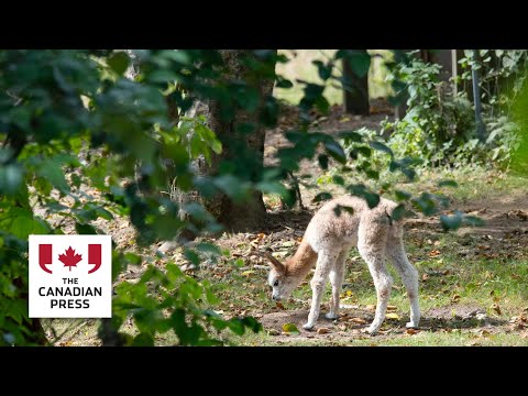 Newborn alpaca Carmela takes her first wobbly steps at Vancouver zoo – YouTube