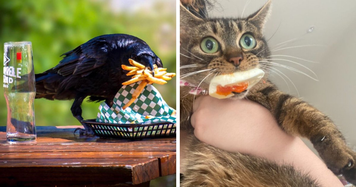 A lot of human food isn’t meant for animals, but that won’t stop some hungry critters from trying to sneak a taste. Some pets and wild animals are so blatant with their culinary thievery that people couldn’t help but snap a pic of their funny and adorable antics.