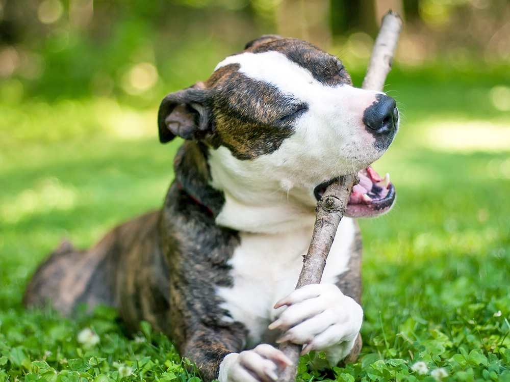 Dogs might love to chow down on some wood, but the risk of splinters is very real — and even that could be the least of your worries. Sticks can injure gums, get lodged in teeth, and wreak all sorts of terrifying havoc when ingested. For that reason alone, it might be time to help them kick the habit.